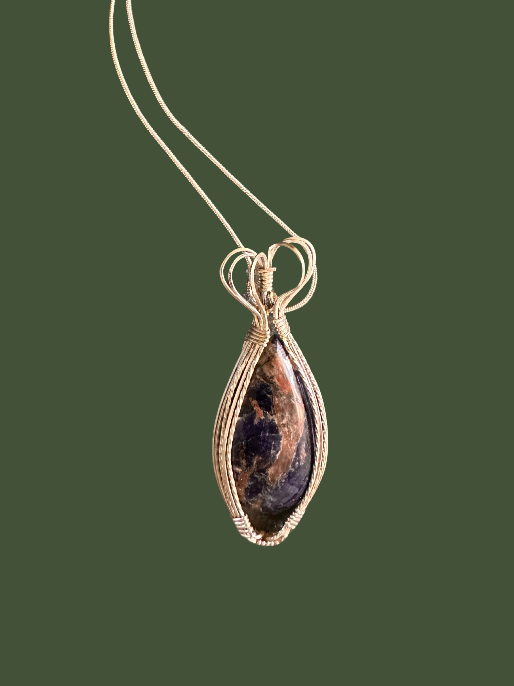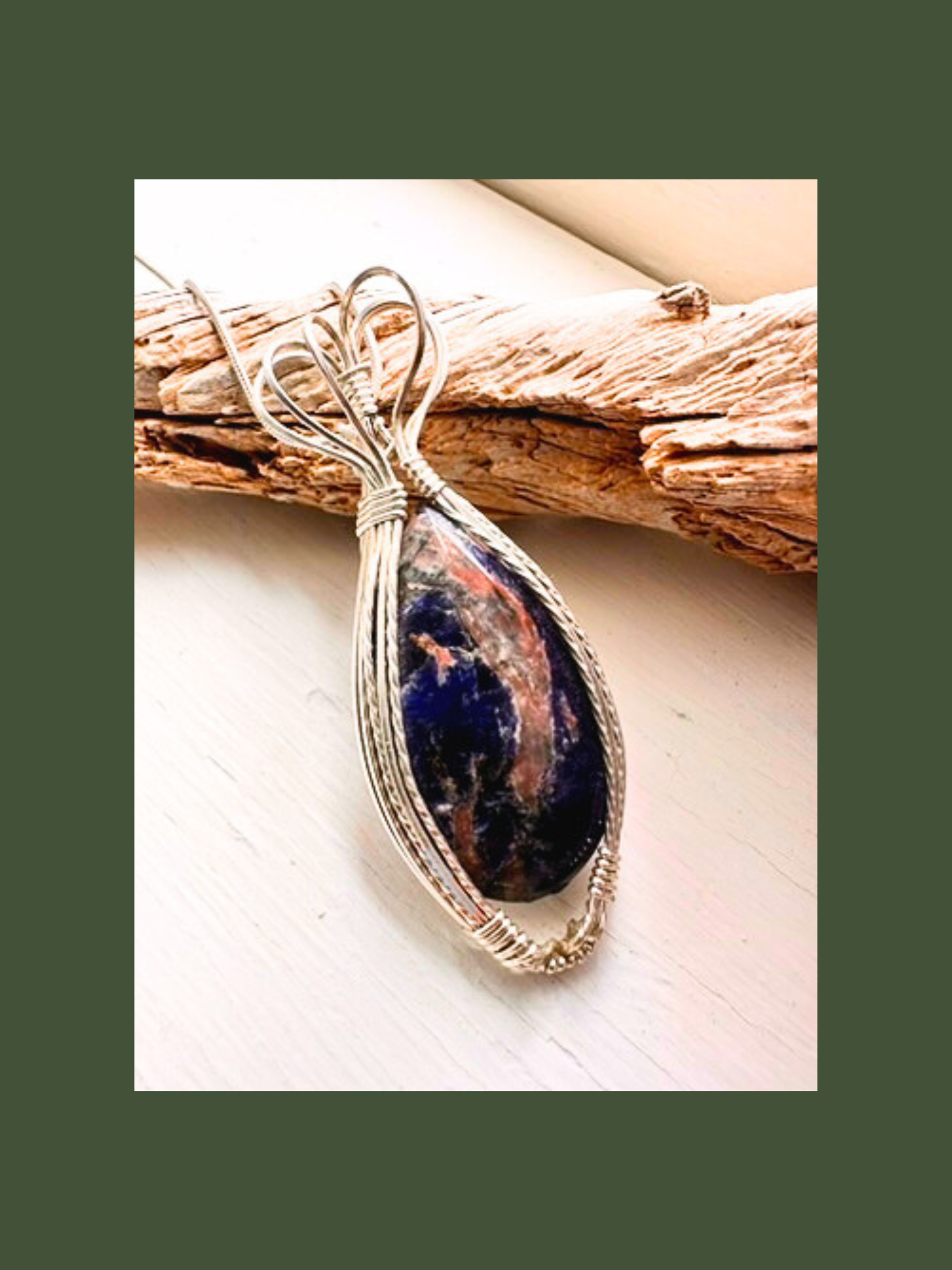 This beautiful agate stone has been smoothed into the shape of a fish and hand adorned with elegant silver bezels and chain.